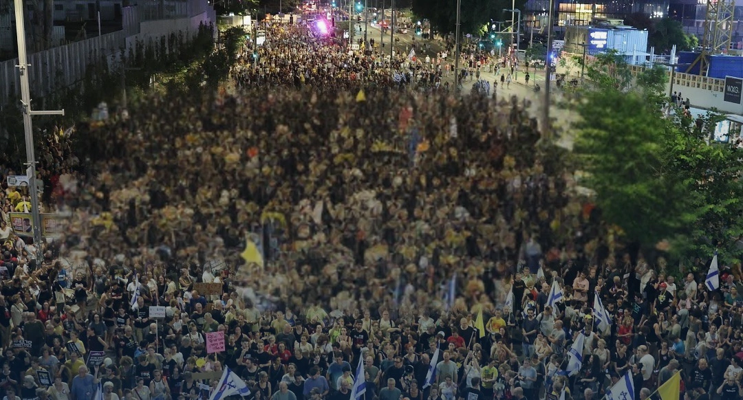 Decenas de miles de personas salieron este sábado a las calles de Tel Aviv para exigir al primer ministro israelí, Benjamin Netanyahu, que suspenda de inmediato sus planes de ocupar la ciudad de Gaza.