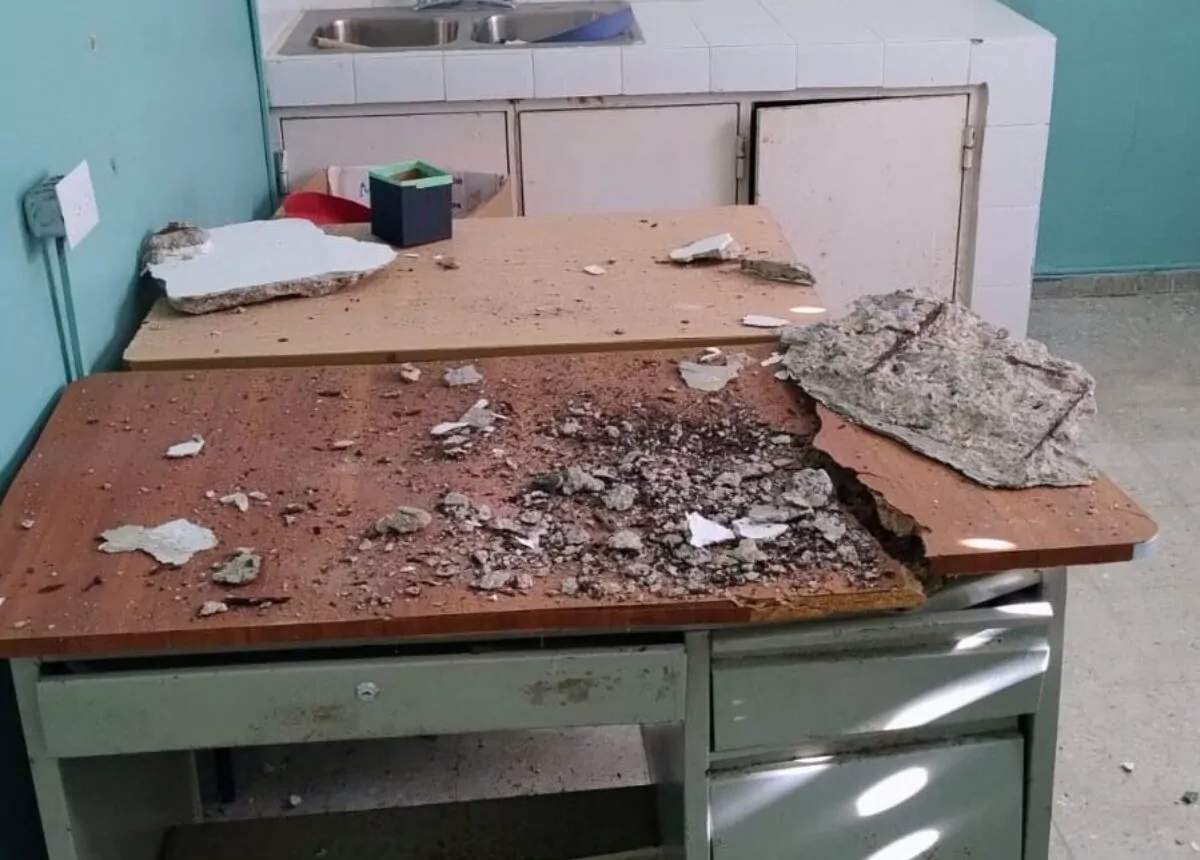 A través del WhatsApp, RCC Noticias ha recibido imágenes de la estructura, donde se observan pedazos de cemento en el suelo y sobre una mesa y las grietas en el techo de lo que han identificado como la oficina de los coordinadores académicos.
