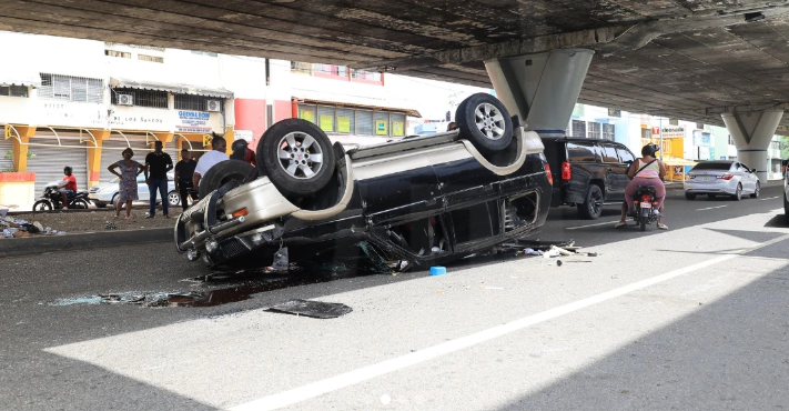 El accidente ocurrió cuando una yipeta Mitsubishi Montero fue impactada por una Hyundai Santa Fe roja que se encontraba detenida en un retorno, según relató el conductor de la Montero, Leonardo Matos. El choque lateral provocó que el vehículo volcara y quedara boca abajo sobre el pavimento.