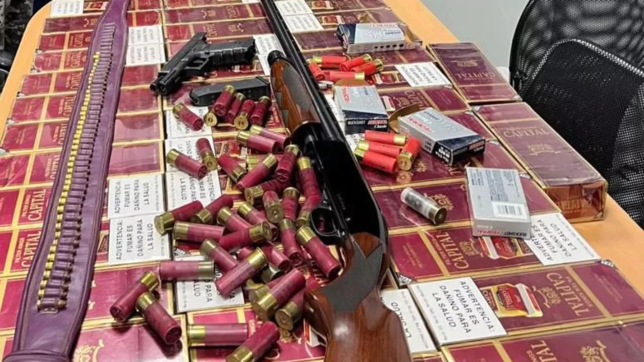 Asimismo, se ocuparon dos armas de fuego: una escopeta de cañón largo con 50 cartuchos y una pistola marca Glock con 45 cápsulas, ambas registradas a nombre del detenido.