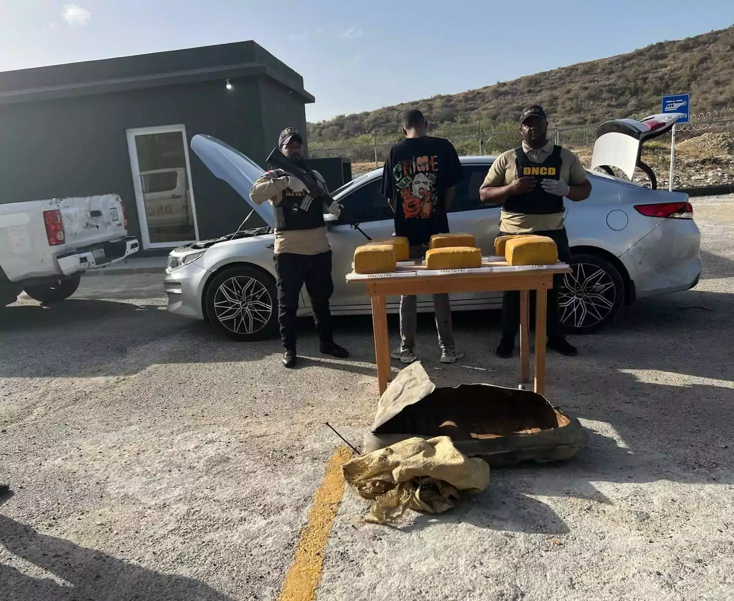 Las autoridades, como parte del reforzamiento de las operaciones para combatir y erradicar el tráfico de drogas, interceptaron al conductor de un carro marca Kia, color gris, en el puesto de chequeo de Vicente Noble.