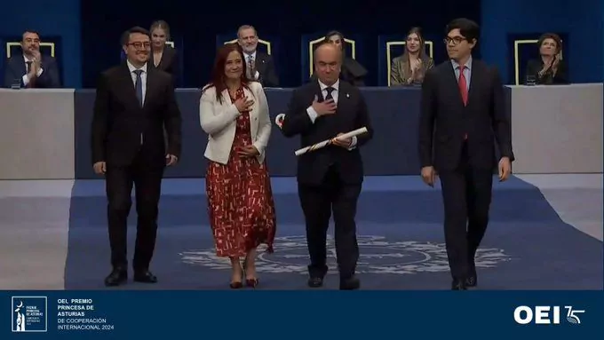 La Organización de Estados Iberoamericanos para la Educación, la Ciencia y la Cultura (OEI) ha recibido el Premio Princesa de Asturias de Cooperación Internacional 2024 en una ceremonia solemne que ha contado con la presencia de los Reyes de España y la Princesa de Asturias.