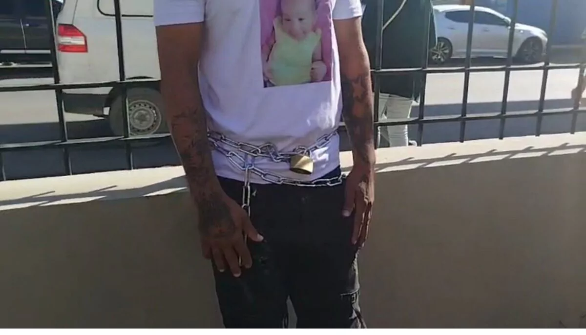 Juan García Cruz se encadenó este martes en Santiago en protesta por la muerte de su hija, una bebé que falleció mientras se encontraba bajo la custodia del Consejo Nacional para la Niñez y la Adolescencia (Conani).