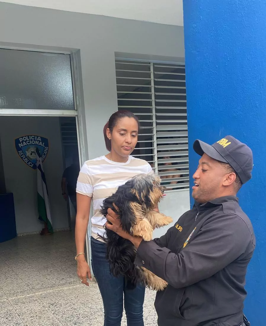 Agentes policiales, adscritos Santo Domingo Norte, recuperaron sana y salva a una perrita, cuya propietaria había reportado robada en el sector Los Guaricanos.