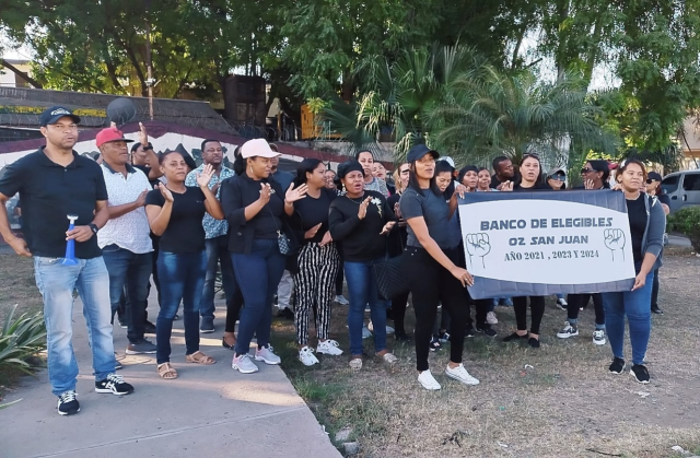 Un grupo de profesores del banco de elegibles de 2021, 2022 y 2024 de la provincia de San Juan se apostaron hoy frente a la regional 02 de educación, San Juan-Elías Piña, en protesta para exigir los nombramientos.