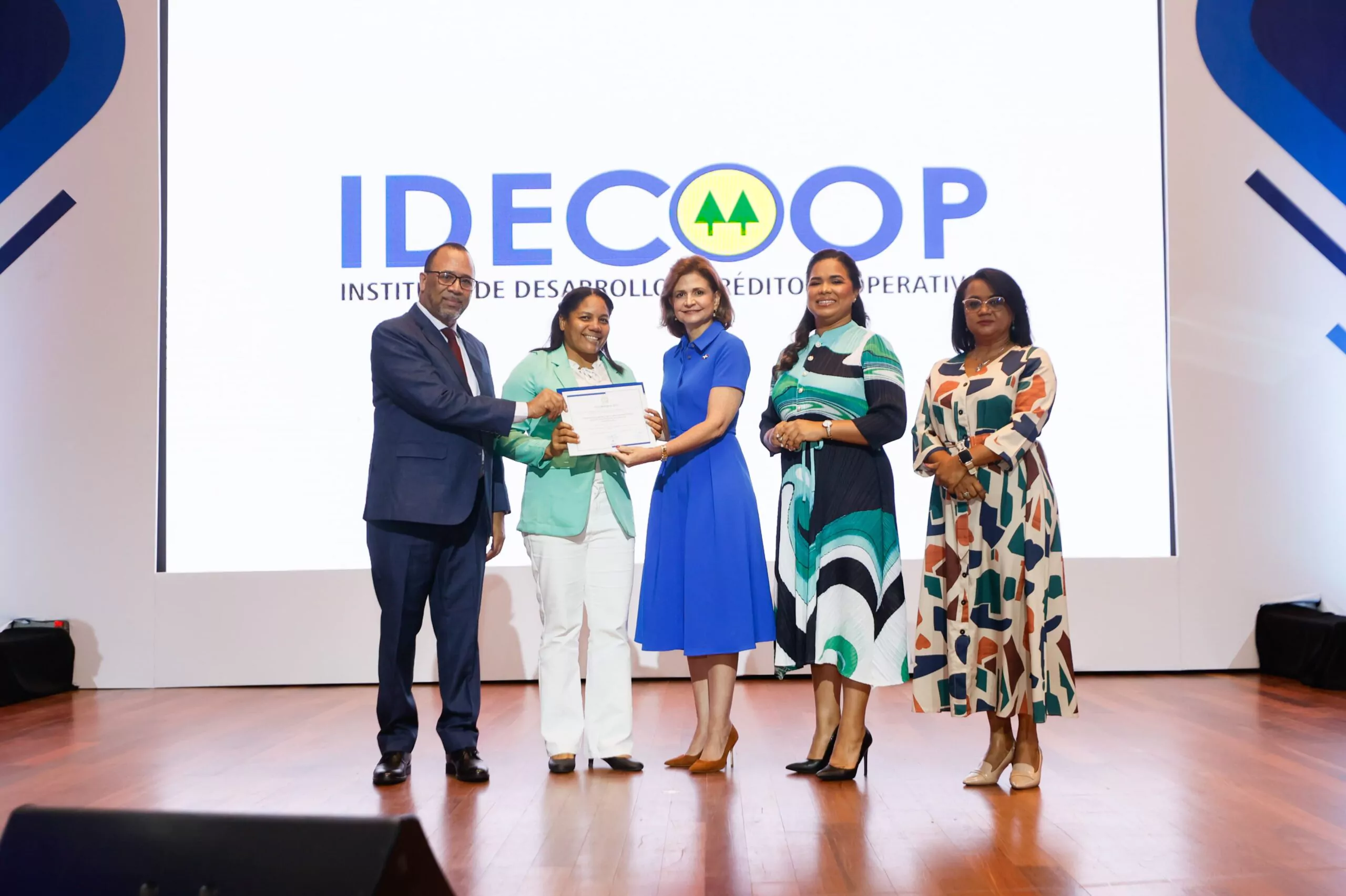 La vicepresidente, Raquel Peña, encabezó la tercera entrega de certificados de incorporación del Instituto de Desarrollo y Crédito Cooperativo (IDECOOP), un evento en el que la referida institución también presentó sus principales logros.