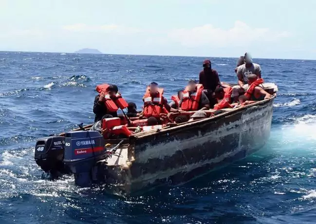 Los guardacostas detuvieron la embarcación sospechosa, a bordo de la cual viajaban 14 migrantes, 11 hombres y tres mujeres, que afirmaron ser nacionales de la República Dominicana.