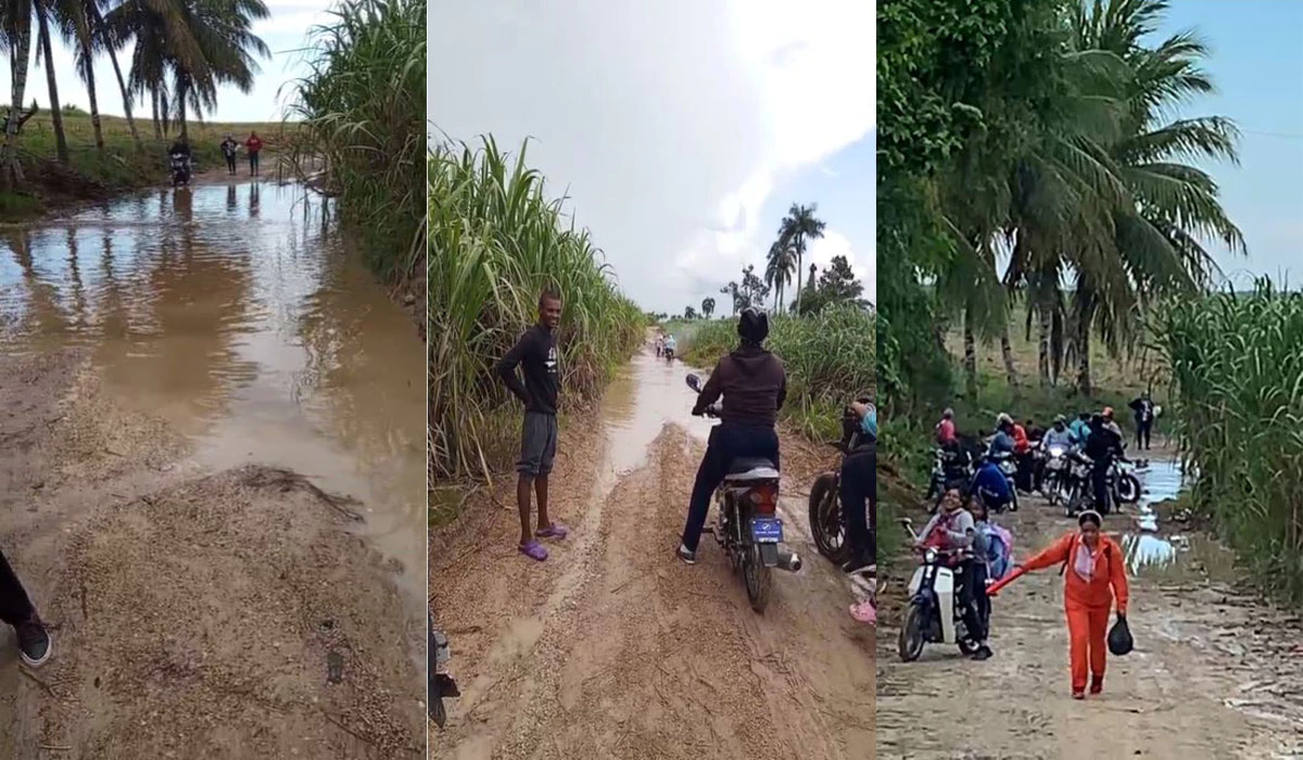 Entre el lodazal y el fango, estudiantes y profesores de la sección de Mata de Palma del Seibo deben asistir a los centros educativos, debido a las pésimas condiciones de los caminos vecinales, lo que dificulta que puedan desarrollar la labor educativa con efectividad plena.