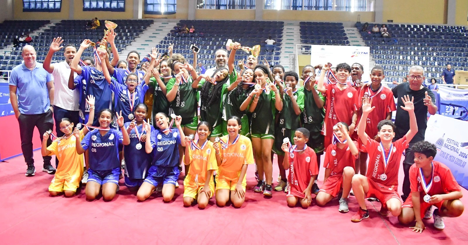 Las representaciones de Santiago y San Pedro de Macorís lograron los máximos honores en los renglones masculino y femenino, respectivamente, del Primer Torneo Nacional de Tenis de Mesa Escolar 2024 celebrado en el Parque del Este, en el que participaron estudiantes de 17 de las 18 regionales educativas, con edades comprendidas entre 13 y 15 años.