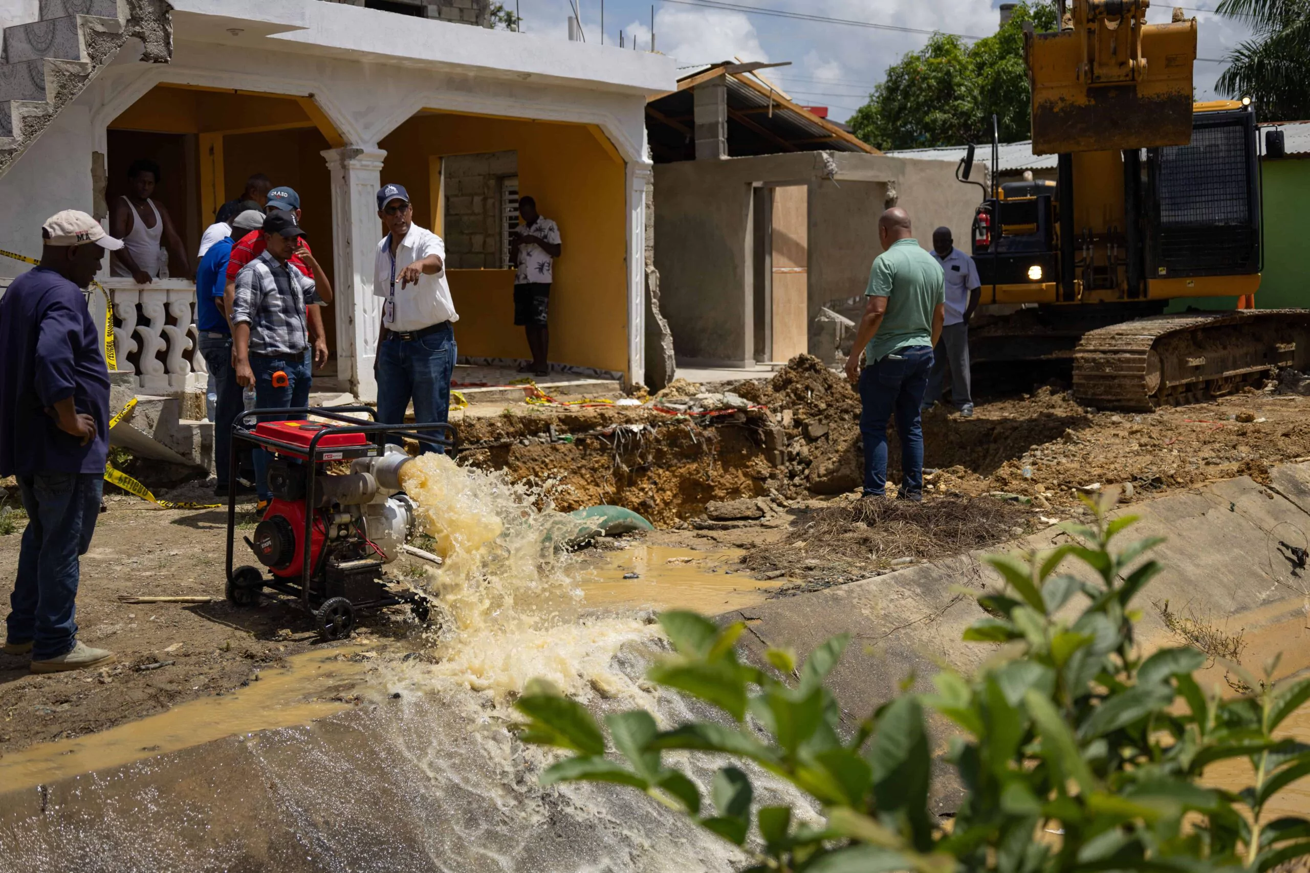 Una retroexcavadora, una pala mecánica, varios camiones de volteo y personal de la entidad trabajaron arduamente el miércoles para localizar el tubo afectado y reparar la fuga. Luis Salcedo, subdirector de Operaciones de la Caasd, informó que el martes se cerró el acueducto.