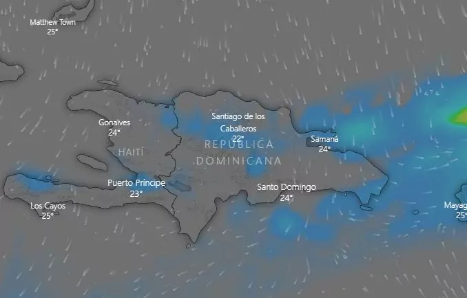 Para mañana, lunes, aunque el sistema frontal estará fuera de la influencia directa, el viento del este/noreste continuará trayendo nubes hacia el territorio, generando lluvias pasajeras, de débiles a moderadas en las mismas áreas. Las localidades más afectadas serán La Altagracia, El Seibo, San Pedro de Macorís, Hato Mayor, Monte Plata, Samaná, María Trinidad Sánchez, Duarte, Gran Santo Domingo, Monseñor Nouel, La Vega y Puerto Plata.