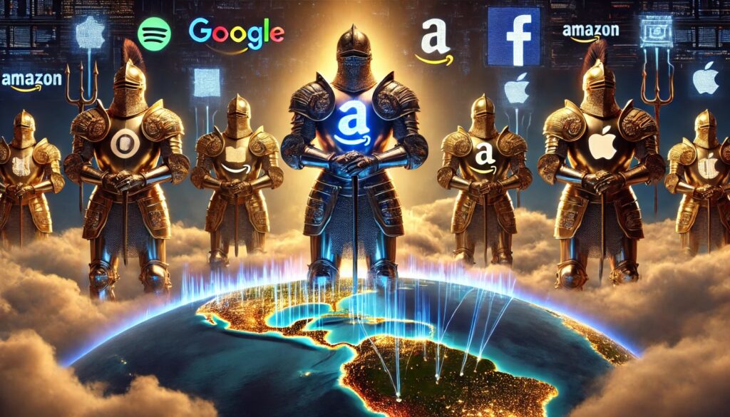 Este fenómeno se manifiesta en la concentración de poder en manos de gigantes tecnológicos como Amazon, Google y Facebook, que no solo dominan sus respectivos sectores, sino que también poseen vastas cantidades de datos de sus usuarios, otorgándoles un control sin precedentes sobre el comportamiento y las decisiones de las personas.