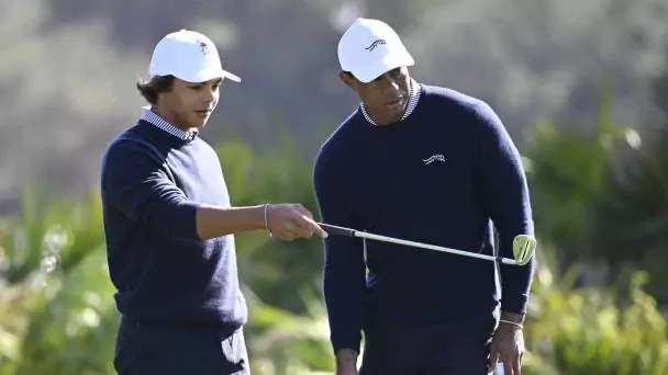 El dúo conformado por Tiger Woods y su hijo Charlie, de 15 años, impresionó en la jornada del sábado del PNC Championship al conseguir cinco birdies consecutivos en los últimos nueve hoyos. Terminaron con una tarjeta de 59 golpes, 13 bajo par en el formato scramble, lo que los ubicó en el liderato compartido del torneo.