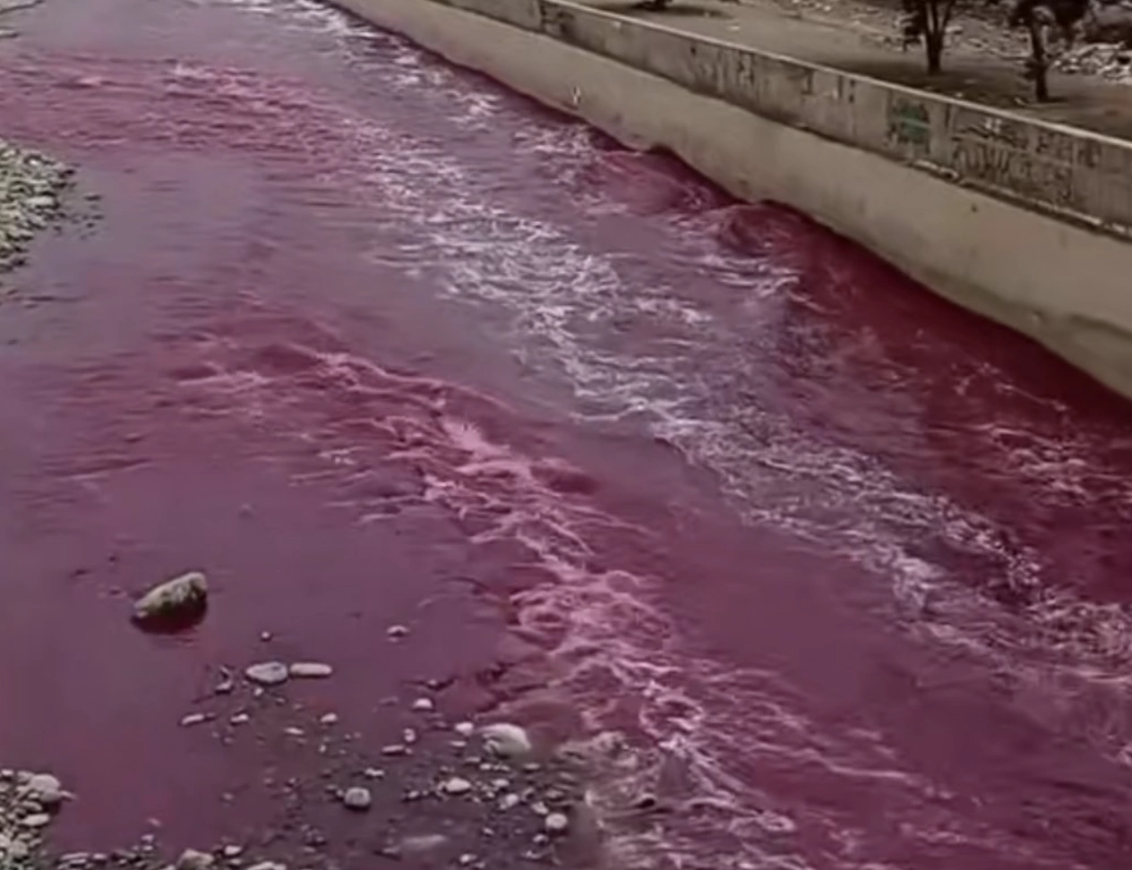 La inusual coloración rojiza del río Rimac en la capital de Lima en Perú, generó alarma entre los ciudadanos debido a la importancia del caudal para el consumo, la agricultura y la generación de electricidad.