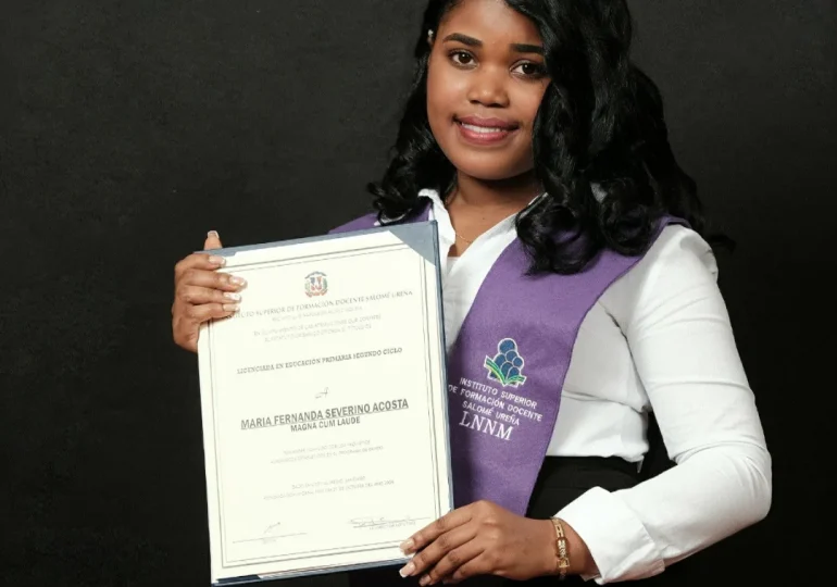 La maestra María Fernanda Severino, graduada Magna Cum Laude del Instituto de Formación Docente Salomé Ureña (Isfodosu), se ha hecho viral en redes sociales tras la difusión de un video en el que muestra una metodología didáctica basada en la música para la enseñanza de las sílabas en el aula.